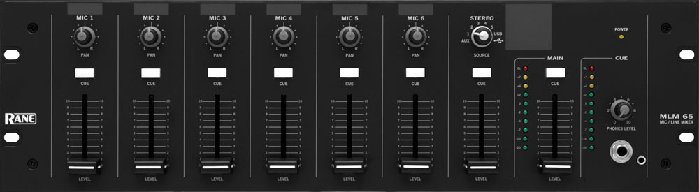 The Rane MLM 65 Mic / Line Mixer is designed for easy manual mixing of up to 6 mic/line inputs and playback of one of several stereo audio sources, including modern USB audio and old school vinyl. Simultaneous digital audio recording of the manual mix to S/PDIF, TOSLINK and/or USB audio provides a formidable mixing ally in today's audio world. The MLM 65 features and topology are simple for non-technical operators, and it's dedicated USB Charge port supports anyone's phone to play MP3s.